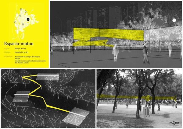 Con el objetivo de dar luz y visibilidad a la red de solidaridad y apoyo mutuo existente entre los colectivos sudamericanos que usan el parque Amate, y celebrar el uso del mismo como espacio de encuentro, solidaridad y juego, la intervención Espacio-mutuo plantea la construcción de una nueva red